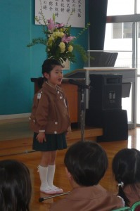 第61回入園式 園庭の花々が満開に咲き誇る中、入園式を行いました。 少し大きな制服に身を包み、嬉しそうに幼稚園の門をくぐる年少児は すっかり大きなお兄さん、お姉さん気分。 これから始まる毎日にドキドキワクワク! ようこそ!高松幼稚園へ! 在園生代表のお姉さん(年中児)からの歓迎メッセージ。 このお姉さんも、一年前にはこの場で入園式に出席していたんだよね。