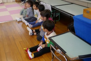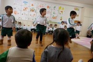 みかん組「みんなで踊ったよ」 朝は登園してきた子から好きな遊びをしたよ。 お絵かき、ボール投げ、お弁当作り、ままごと…。 みんなで一緒にボールのお片づけ、色を分けながら上手にできたね。 その後は、『ぼくのともだち♫』という曲に合わせてみんなで踊ったよ。 いろいろな動物のまねっこ、楽しかったね。 赤1組さんのおゆうぎを見せてもらったよ。 カウボーイ、かっこよかったね。