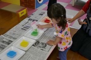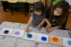 まずは、「ボールと仲良くなろう!」とボールとのふれあい遊びを楽しみました。