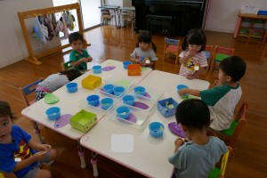 高松幼稚園・プレ幼稚園 2歳児保育みかん組、9月の様子です。9月から、火曜日と水曜日の2回登園になりました。