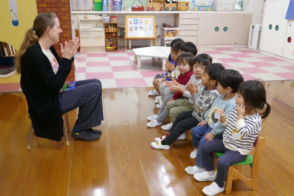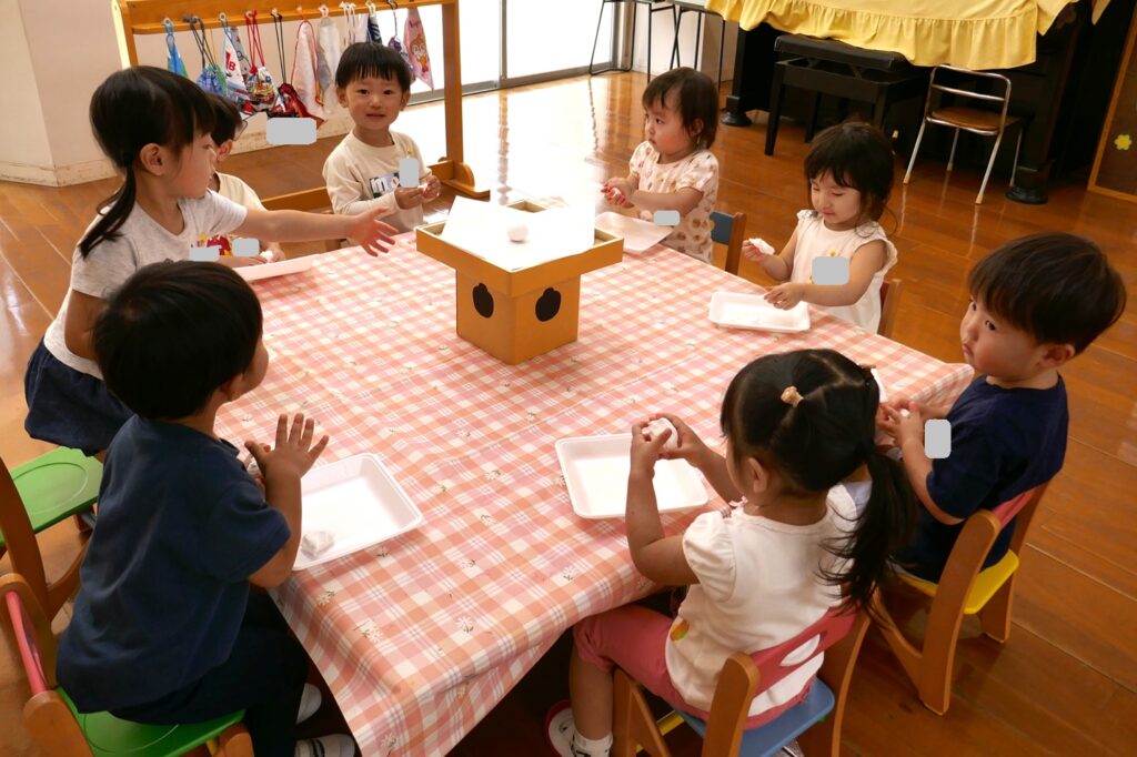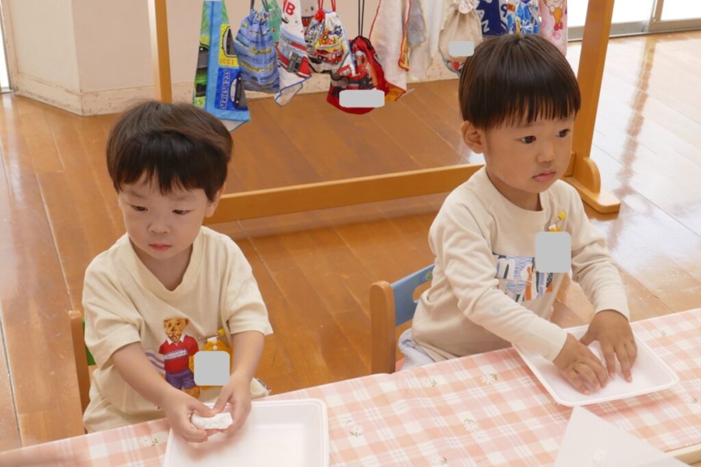 みかん組「10月の様子」 みかん組、10月の様子です。 紙粘土でお月見団子作り、丸くまるめるのは、すこし難しいけど頑張って作ったよ。 できたお月見団子やすすきを飾って、写真を撮ったよ。 10月は、外でたくさん遊んだよ。 大きなすべり台に挑戦!最初は怖がってたお友だちも何回も滑るうちに上手に滑れるようになったよ。 砂場遊び大好き!電車を走らせるのも楽しかったね。 10月からカサンドラ先生の英語遊びも始まったよ。 11月もたくさん遊ぼうね。