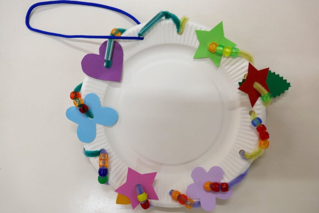 吊るす飾り、紙皿の飾り、ネックレス、とても素敵な作品が出来たね。